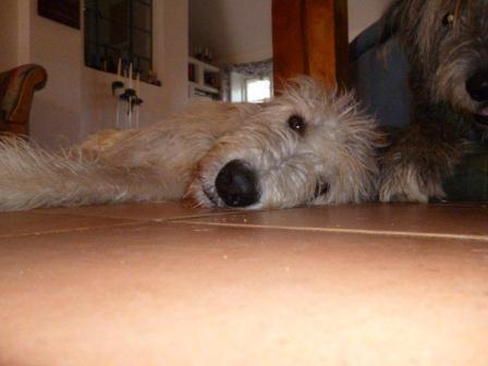 ".....nach einer langen Fahrt(wir waren gegen 22Uhr zuhause)-die die beiden Hunde geduldig ertrugen, liegen jetzt Leon, Finn + Pauline im Kreis um mich herum! Leon hat getrunken, gegessen und ohne Leine mit unseren beiden Hunden einen guten Gang gemacht. Natürlich ist er noch ein wenig nervös, weint oder heult, wenn ich mich anschicke, den Raum mal kurz zu verlassen, aber er läßt sich relativ gut davon abbringen.
