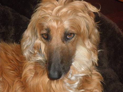 Ellie eine ca. 5 bis 6 Jahre alte kastrierte Afghanen-Hündin sucht ein neues Zuhause. Sie ist stubenrein, leinenführig und verträglich mit anderen Hunden.