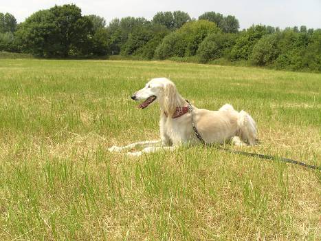 Unsere Saluki-Hündin Dana ist umgezogen... und sie sieht doch schon recht begeistert aus.