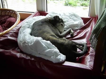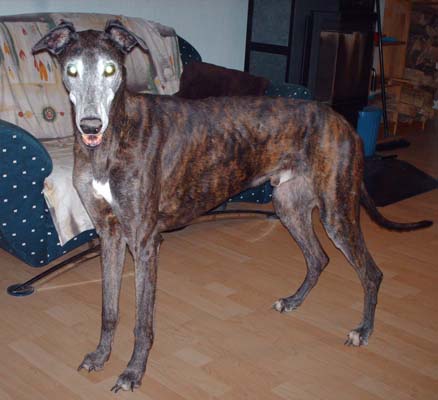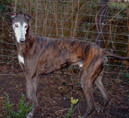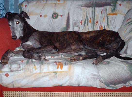 Anfang 2008 übernahmen wir einige Windspiele, mit dabei waren auch drei alte Show-Greyhounds, nämlich die Schwestern Obony und Oceanie und ein Bruder der beiden, Obby-One. Während die beiden Mädchen schon lange tot sind, hielt Obby-One bis jetzt tapfer durch. Er wurde 14 Jahre alt und mußte gestern erlöst werden.