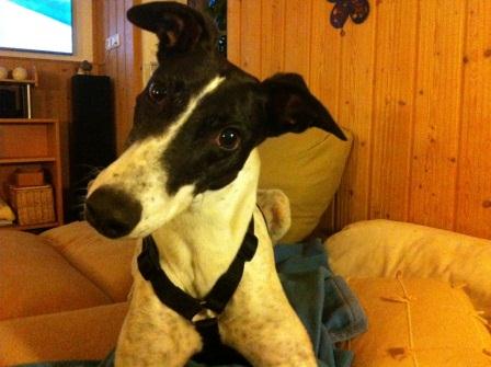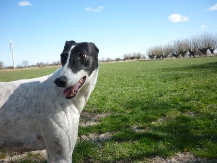 Sandy war bei uns von Anfang an ein Clown und hatte richtig Pfeffer im Hintern. Eigentlich hatten wir sie im Rahmen einer Pflegestelle für die Initiative Windhundhilfe e.V. zu uns genommen, da wir ja eigentlich „genug eigenen Hund“ in der Familie hatten. Die erste Nacht aber zeigte schon, dass das schwer würde. Sandy lag morgens um 3 Uhr dann bei Herrchen im Bett (Frauchen regelte den Verkehr mit den anderen im Wohnzimmer) und schaute, was der neue Mann da so macht. An Schlafen war nicht zu denken, denn sie hechelte vor Aufregung sehr laut und suchte Körperkontakt. Durch ihre freche aber so nette Art war bereits nach nicht mal einer Woche klar: Sandy bleibt.