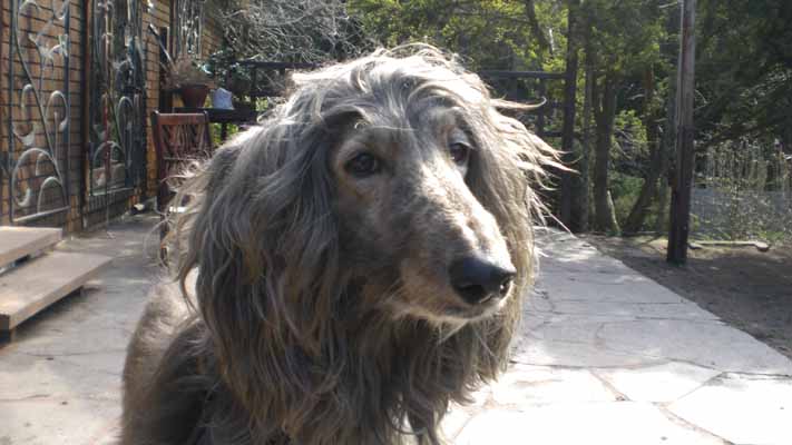 Chufa ist ein knapp 6 Jahre alte blau-creme gestromte Afghanen-Hündin. Sie ist verträglich mit anderen Hündinnen, wobei sie sich von niemenanden die Butter vom Brot nehmen läßt.