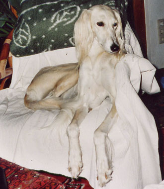 Nun hat sie das Paradies gefunden! Sie wohnt sogar mit zwei Salukis zusammen und fühlt sich sehr wohl - was sonst, bei so erfahrenen Saluki-Menschen mit viel Zeit, Liebe und Einfühlungsvermögen!!