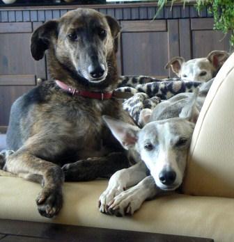 Die ca. 5 Jahre alte, kastrierte Hera (links) ist vermutlich eine Mischung aus Chart-Polski und Greyhound.