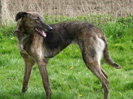 Sie ist eine phänomenale Hündin, sehr anhänglich, absolut liebenswert und verträglich mit allen Hunden. Rüden jeglicher Rasse werden sofort angespielt. Menschen gegenüber ist sie windhundtypisch anfänglich zurückhaltend, wobei sich das größtenteils auf Männer beschränkt. Dafür liebt sie Kinder sehr.