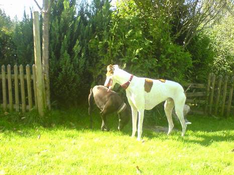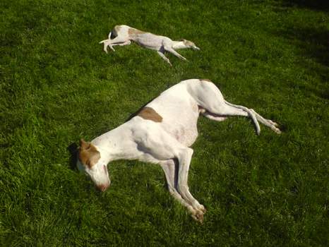 Gestern ist Harvey zu unserer Elisabeth gezogen. Dort lebt der hübsche Kerl mit Rani, einer iWi-Salukia, und zwei Katzen zusammen. Vor dem Zusammentreffen mit den Katzen war uns allen etwas mulmig, wobei wir Harvey so einschätzten, dass Samtpfoten für ihn kein Futter sind - und so ist es auch, die Katzen lässt er links liegen.