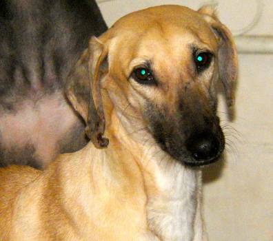 Tahiri, eine einjähriger Sloughi-Rüde in sandfarben mit Maske sucht ein eigenes Zuhause.