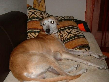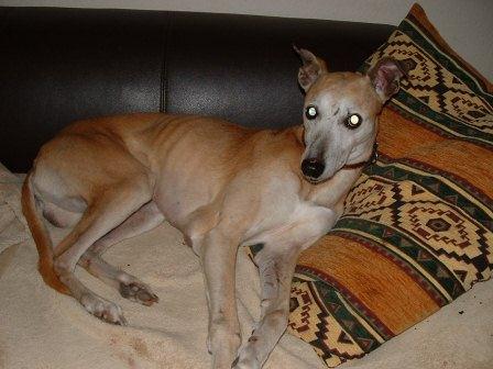 In einem Tierheim "fanden" wir einen auf ca. 10 Jahre geschätzten Greyhound, der Fly genannt wurde.