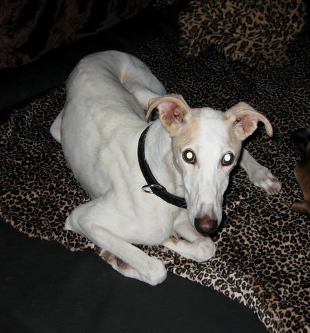 Am 29. August 2007 übernahmen wir den damals sechs Jahre alten, kastrierten Nino zusammen mit drei seiner Verwandten. Eine davon, Isabella, zog zu unserer lieben Sandra, Nabeeh und Amado fanden auch ein Zuhause. Nur unser Nino schien "schwer vermittelbar", weil er der ängstlichste unter ihnen schien. Er lies sich sich ungern an die Leine nehmen und wenn es klappte, wollte er vor Angst nicht laufen und warf sich auf den Boden. Nino war sehr lange auf unserer Pflegestelle, bis der Galgorüde einer Tierschützerin starb und somit ein Plätzchen für Nino frei wurde. Sandra war so lieb und hat Nino im Dezember 2007 zu seiner neuen Familie gefahren, wir freuten uns alle riesig darüber.