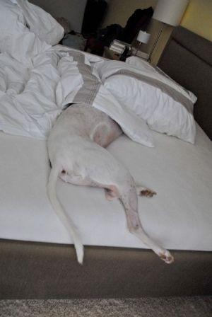Tilda kam auf die Pflegestelle und war sofort der Liebling aller. Sie hat die Umstellung überraschend gut weggesteckt und stiefelte sofort ins Bett, um ein ausgiebiges Schläfchen zu halten.