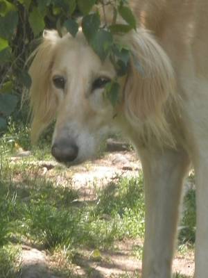 Er ist ein echter Goldschatz, lieb, anhänglich, souverän - ein perfekter Saluki.