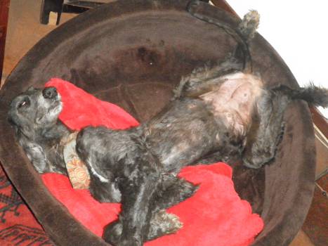 Ihr neues Frauchen hat sich lediglich beklagt, daß Durchlaucht ein Frühaufsteher ist: Bereits um sieben ist sie topfit, hüpft, springt, singt und will nur eines - ihr Frühstück. Ein großer Rinderstick und eine Schweineohr. Ab mittags ruht die ältere Dame in erster Linie nur noch auf purpurnen Sofas - eins für sich ganz alleine.