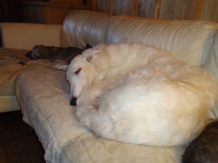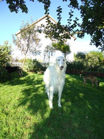 Sein Barsoifreund Karlo freut sich über die Verstärkung.