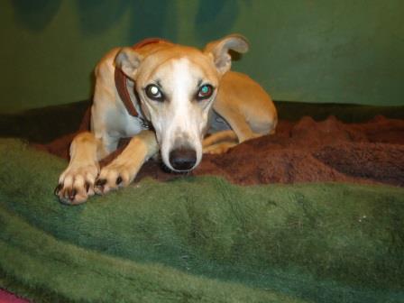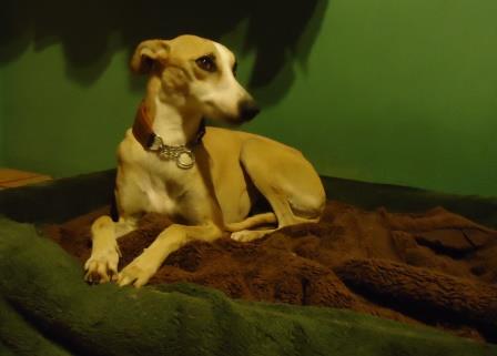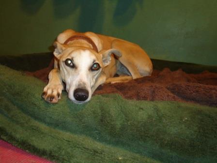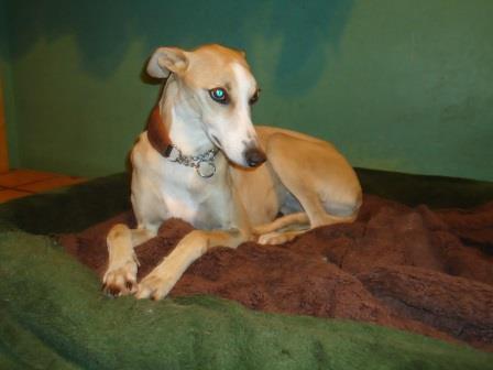 Die zwei Jahr junge Virgola ist heute Nachmittag auf einer Pflegestelle angekommen. Die kastrierte Hündin ist etwas größer als ein Whippet, also eine ziemlich zierliche Ausgabe;-)