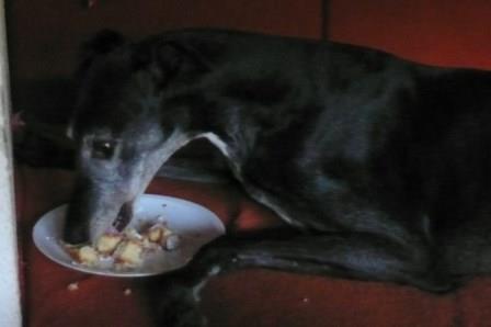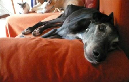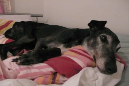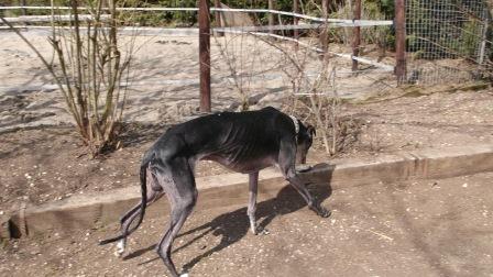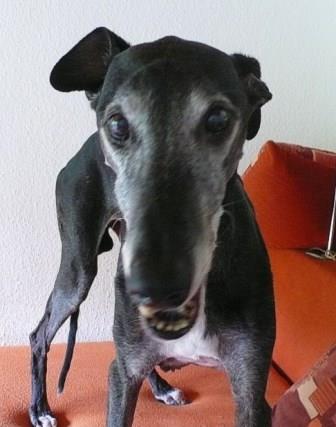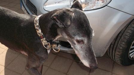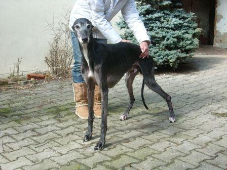 Der riesige Show-Greyhound ist 12,5 Jahre alt und richtig klapprig bei uns angekommen. Man könnte meinen, ein kleiner Windstoss und er kippt um;-(