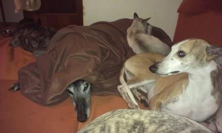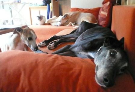 "...jetzt ist er da und er ist bezaubernd. Und das meine ich genau so. Es gab nicht einen Moment Geknurre oder Hysterie oder Ähnliches. Völlig ruhig kam er hier rein, frass den Whippets den Napf leer und schmiss sich aufs Sofa.