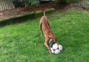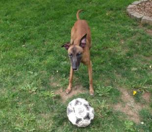Der kastrierte, acht Jahre alte Charlie spielt sehr gerne Fußball, am liebsten mit anderen Whippets oder kleineren Hunden.