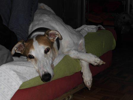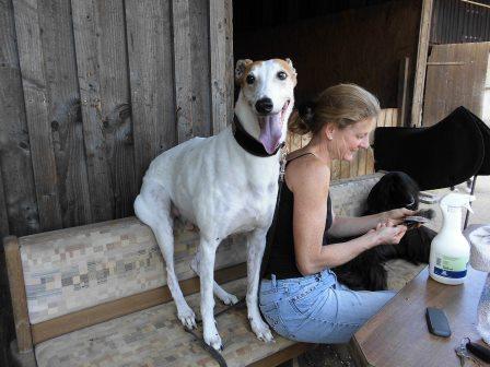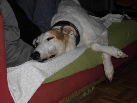 „Wir mussten D’Artagnan einschläfern lassen, er hat seinem Osteosarkom ja noch tapfer die Stirn geboten, jetzt ging aber auch mit hoch dosierten Schmerzmitteln nichts mehr. Er war ein Kämpfer bis zum Schluss, sogar gestern hat er sich noch hochgerappelt, als es geklingelt hat; als Hausmeister muss man ja schließlich nachschauen… Wir werden ihn sehr vermissen, unseren Musketier und Möhrchenkönig! Immerhin ist er über 15 Jahre alt geworden und war knapp über 6 Jahre bei uns. Ich hänge noch ein paar Bilder aus besseren Zeiten an.“
