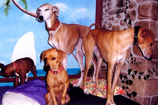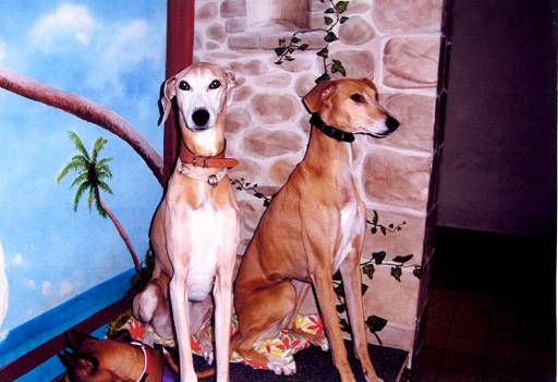 Dies hübsche, bereits etwas ältere Azawakh-Dame (links im Bild), fand bei erfahrenen Rasse-Liebhabern ein neues Zuhause.