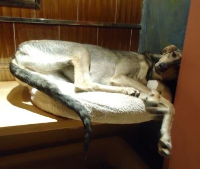 Domino ist drei Jahre jung. Die ersten Tage war sie in Bezug auf unsere anderen Hunde sehr zurückhaltend, dies hat sich schon geändert. Fröhlich besetzt sie das Lieblingsplätzchen von Boris und denkt sich wohl, Pech gehabt, wenn er ankommt und protestiert. Domino ist ein absoluter Rudelhund, ein starker Charakter, der sich völlig cool im Rudel verhält.