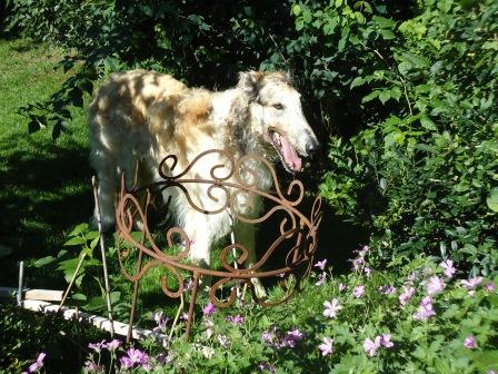 Viel können wir noch nicht über ihn sagen, Fini ist nicht ganz fit was sein Herz betrifft, aber zum Tierarzt fahren wir noch nicht, er muß erst einmal etwas abschalten. Treppen steigt er nicht, ins Haus mußten wir ihn gestern Abend unter lautstarkem Protest seinerseits ziehen und schieben. Den Garten findet er sehr spannend, ganz besonders das Wasserbecken, Fini geht gern tauchen. Unser Rudel hat ihn sehr freundlich und ruhig aufgenommen, wie er über die anderen denkt, wissen wir noch nicht, er hat ja gerade noch mit sich selbst zu tun. News