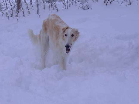 Allerdings hat Shila sich in letzter Zeit wohl gedacht, bei uns bleiben zu wollen, denn bisher gab es zwei Interessenten, die sie erfolgreich vergrault hat. Der mitgebrachte eigene Hund wird von ihr zur Begrüßung mal kräftig gezwickt. Vielleicht liegt das auch daran, dass Shila heiß war, jedoch suchen wir barsoi-erfahrene Menschen für sie, welche sich nicht von ihrer ersten, stürmischen Art einschüchtern lassen.