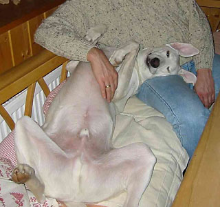 Blanco liebt alle Menschen heiß und innig. Besuchern gegenüber wird er besonders "aufdringlich" - siehe Foto unten!