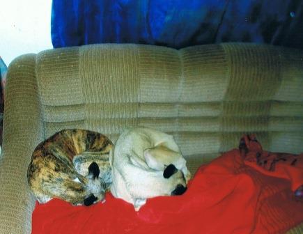 Wie man sieht, haben sich die zwei schon super aneinander gewöhnt und auch Barbara ist total selig. Evi ist eine ganz liebenswerte, sanfte, mit allen Hunden und auch ihren Katzen verträgliches, sechs Jahre altes Schätzchen.