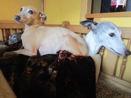 Noch ein Windspielchen ist umgezogen und zwar die neunjährige Lucy. Diese Butzis müssen einfach wieder zu Ihresgleichen. Sie haben all die Jahre mit mehreren Windspielen gelebt und wenn man sieht, wie wunderbar sie untereinander kuscheln, sich putzen und lieben - da kann man nicht anders, sie brauchen einfach wieder mindestens ein Windspiel an ihrer Seite.