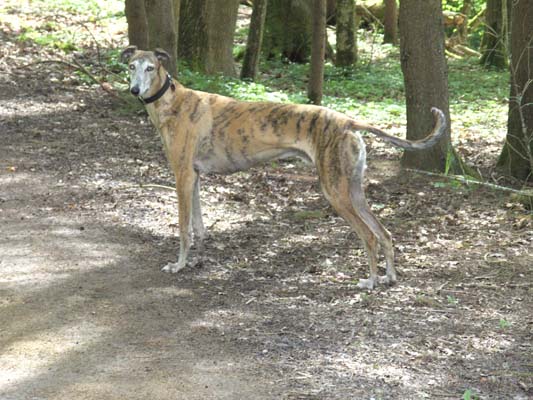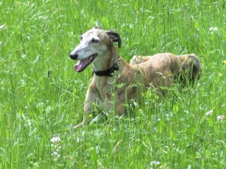 "Little hat sich auf seinem Pflegeplätzchen mittlerweile sehr gut eingelebt und hat sich zu einem fröhlichen und sehr lauffreudigen Zeitgenossen gemausert. In überschaubarem Gelände kann er durchaus auch ohne Leine laufen da sein Jagdtrieb zwar vorhanden aber nicht übermäßig ausgeprägt ist. Little ist manchmal windhundtypisch etwas "schwerhörig", entfernt sich aber nie wirklich weit und mit einem Leckerchen lässt er sich meistens überzeugen.
