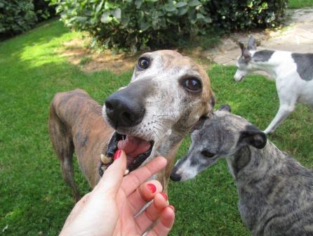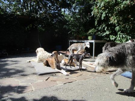Bashou spielt mit Whippets und Windspielen, er kennt keine Katzen.