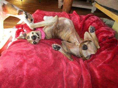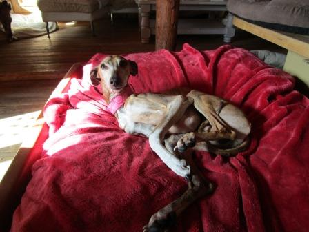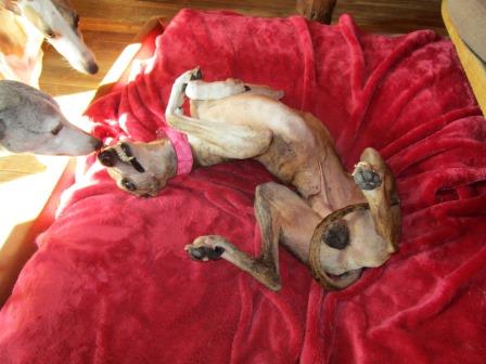 Bashou ist aber schneller bei uns "Zuhause" gewesen als sein Bruder. Insgesamt lässt er sich in recht kurzer Zeit anfassen und hat Vertrauen zu seinem Menschen. Einzig die Rauh- und Langhaar-Fraktion ist nicht sooo nach seinem Geschmack. Ab und an zwackt er einen IW oder Barsoi in den Hintern... und sitzt dann mit einem "ich-war-das-nicht-" Gesicht in seinem Bettchen, ein verräterisches Haarbüschel des Angefallenen zwischen den Zähnen hängend...
