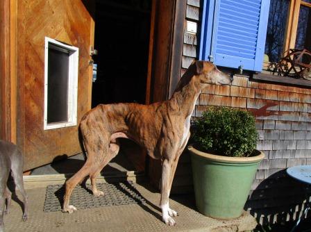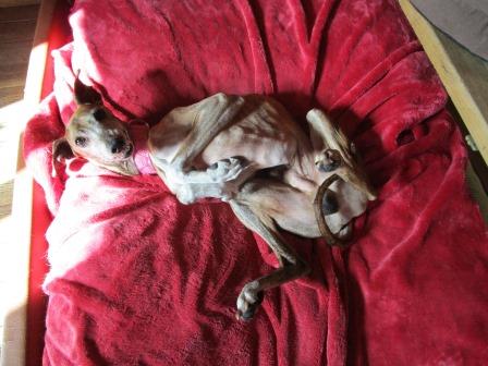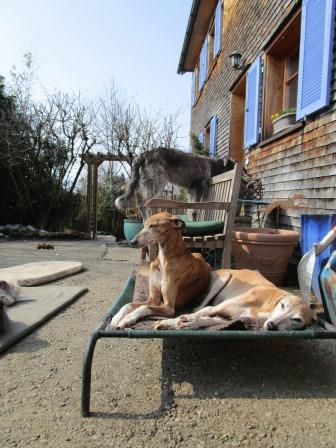 Unser Bashou hat ja am Freitag sein Zuhause bezogen. Ganz oben im Norden bei Ludger, der bereits "berühmt-berüchtigt" in der Azawakh-Welt ist:-) Und der außer einem unserer Azirüden noch ein Windspiel beherbergt und eben jetzt noch Bashou. Tara (verm. Mai 2008) wird im März 14, hat aber Bashou schon beschnüffelt und für gut befunden. Bashou muß sich erst an sein neues Zuhause gewöhnen, was aber laut Ludger erstaunlich gut klappt - ja wir haben ja gesagt, das ist ein gemäßigter, lieber Azawackl.