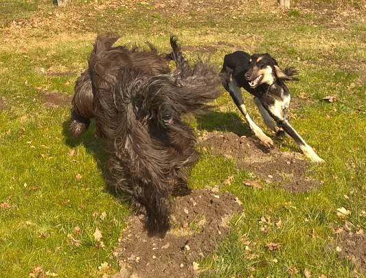 Batu Khan war ein gutes Jahr alt, als er zu Ina und Marley kam. Ein kleiner,süßer und lustiger Kerl, der Inas Haus auf den Kopf stellte bzw. schredderte. Doch Marley war so glücklich mit seinem jungen Freund, dass Frauchen durchhielt und irgendwann legte sich seine Zerstörungswut.