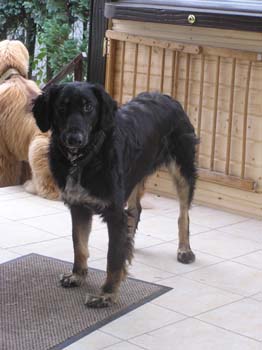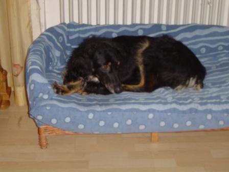 Wir haben ihn damals irgendwo in einem spanischen Tierheim beim nächtlichen Surfen gefunden. Uns schaute damals ein Afghane in die Augen. Er war vermutlich ein Afghanen-Berner Sennenhund-Mix.