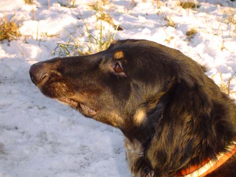 März 2009, neue Bilder von Lollo. Er ist vom Wesen her weniger Afghane als Berner Senner. Eigentlich der ideale Anfänger-Windhund, das Wesen eines Hütehundes mit dem Aussehen eines Windis. Lollo sitzt morgens brav am Tisch und wartet auf ein Häppchen, begleitet seine Pflegemama mit Afghanen leinenlos, fährt problemlos im Auto mit, kann stundenweise alleine bleiben, einfach ein sehr liebenswerter, kleiner Schatz.