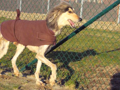 Hanno, ein 6 Jahre alter Afghanen-Rüde in blau-creme-domino sucht eine eigene Familie. Er gehört zu dem Siebener-Rudel, das wir nach dem Tod der Besitzerin übernommen haben. Er ist mittlerweile geschoren und mit Mäntelchen ausgerüstet.