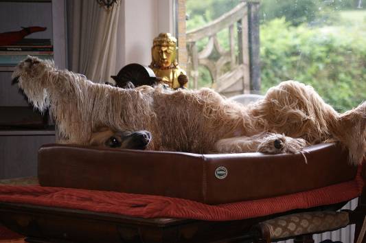 Im Sommer 2016 durften wir die schöne fünfjährige Scheherazade bei uns willkommen heißen. Sie war unser Goldstückchen. So schön, so lieb und vor allem so lustig. Ausgestattet mit erfrischendem Temperament, Selbstbewusstsein und Lebensfreude, für die wir die Afghanen kennen und lieben. Wir nannten sie Genni. Ihr richtiger Name lautete allerdings Gaga. Und je länger sie hier war, umso häufiger habe ich gedacht : Das passt ! Zu ihrem wundervollen Wesen gehörte immer auch eine Prise *Gaga*. Wenn sie sich gefreut hat, egal ob auf Ausflüge oder eine gute Mahlzeit, hat sie mit vollem Schwung Sofas und Sessel an die Wand gefahren, sich beim Hochspringen um die eigene Achse gedreht und ihrer Aufregung ziemlich stimmgewaltig Ausdruck verliehen. Sie war die Montserrat Caballe unter unseren Hunden. Hat ihre Stimme geliebt, viel und gerne und vor allem laut und leidenschaftlich eingesetzt. Jahre später, nach einer schweren Erkrankung musste Genni notfällig kastriert werden. Danach haben wir ihr keine Bikini-Figur mehr abverlangt, ihr üppiges Haarkleid hat sie sportlich kurz getragen und so sah sie dann im Alter eher aus wie ein kleines goldenes Bärchen. In den letzten Wochen ging es dann leider rapide bergab mit Genni's Gesundheit und vor ein paar Tagen zeigte sie deutlich, dass sie nicht mehr kann und nicht mehr mag.