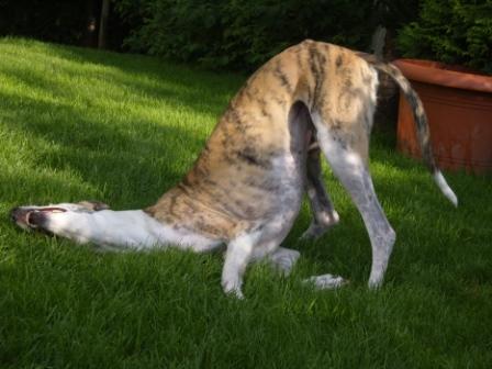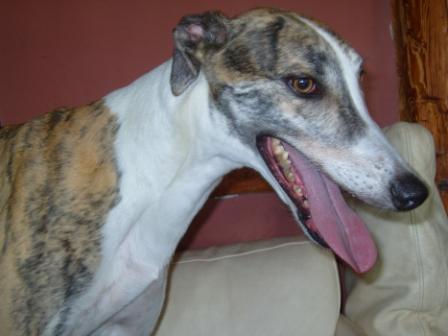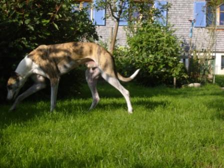 Drei Jahre jung ist dieser herrliche Greybube. Dios ist wie die meisten Greys, ein Anpassungskünstler, er macht alles ohne große Probleme mit. Im Auto verhält er sich lieb und ruhig, bei den Spaziergängen läuft er leinenlos und muß ab und zu ein wenig Rasen, um dann gleich wieder zum Pflegefrauchen zu rennen.