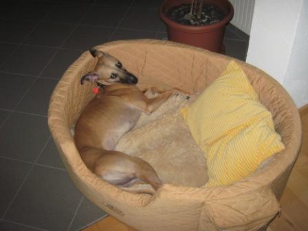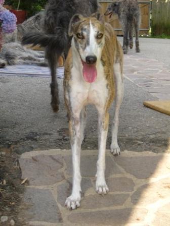 Der schöne Grey kam im Juli 2009 zu uns und zog im Februar 2010 bei Karin und Thomas als erster Hund ihres Lebens ein - die beiden hatten uns schon öfters gefragt, besassen damals aber etliche Katzen, die keine Hunde kannten.
