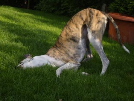 Heute Abend gabs gleich Fotos, Dios´ neue Nachbarin -unsere Ice- hat dem großen Schatz gleich gezeigt, wer von beiden die Hosen anhat;-)