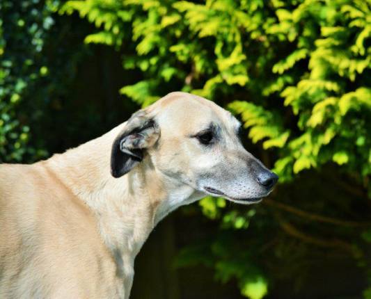 Wer sich vorstellen kann, einen mittelalterlichen kastrierten Sloughi-Buben aufzunehmen, darf sich gerne melden.