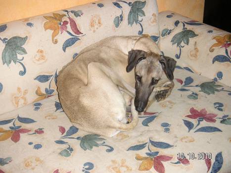 Ihr Leben war bislang nicht einfach und dennoch hat sie sich ihr wunderbares Wesen erhalten: dem Menschen zugetan, schmusig, mit Artgenossen verträglich und v.a. sie strahlt wirklich die Ruhe aus, die man einem Sloughi sprichwörtlich zuschreibt.