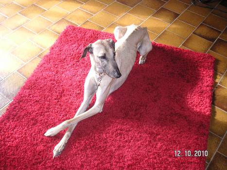 Abends kam dann auch noch eine Email von Sloughi Sotis bzw. ihrer Pflegemama. Die hübsche 8 Jahre alte Dame habe sich hervorragend eingelebt, Sotis würde sowohl die drei Kinder der Familie als auch die 3 Whippets lieben und im übrigen sei nicht einmal der Pflegepapa mehr bereit, sie wieder rauszurücken.