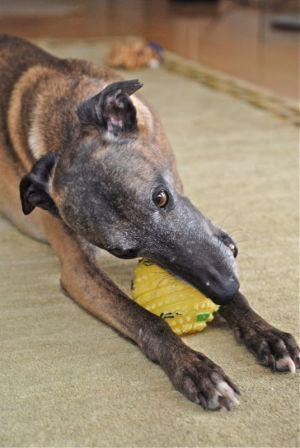 Tigris braucht nicht unbedingt andere Hunde um sich herum, er ist glücklich, wenn sein Frauchen viel Zeit für ihn hat und endlos mit ihm kuscheln kann.
