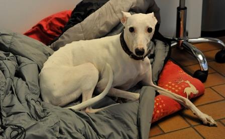 Whitey ist bereits vor einigen Tagen in sein neues Zuhause gezogen. Dort hat er einen lustigen Hundekumpel und zwei liebe Menschen, die ihn total klasse finden - eventuell wachsen da also neue Whippetliebhaber heran :-)