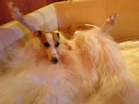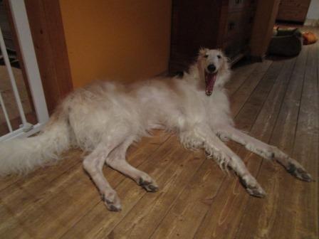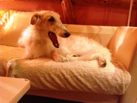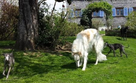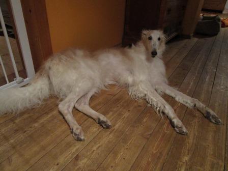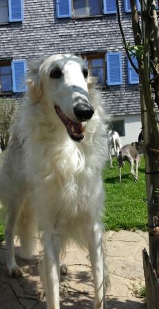 Er ist mit Abstand der liebste, harmloseste Barsoi, den wir je hatten - aber draußen bei Begegnungen mit fremden Hunden könnte er in den falschen Händen zur Katastrophe werden.