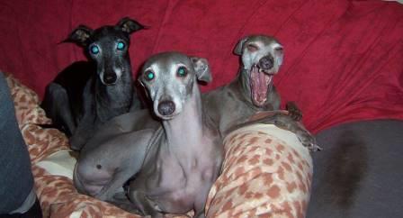 Die beiden sind kastriert, herzallerliebst und voller Charme und Schrullen. Ruth würde am liebsten den ganzen Tag unter ihrer Decke verschlafen, Spaziergänge bewältigt sie nur zur Hälfte, d.h. sie wartet an einer Wegbiegung auf uns, um dann fröhlich mit uns wieder nach Hause zu laufen. Fritz liebt spazierengehen und rennt gerne den Raben hinterher. Fritz möchte immer in der Nähe vom Frauchen sein, Ruth ist zufrieden, wenn sie nachts neben Frauchen und Fritz schlafen kann. Eigentlich sind die beiden weitestgehend stubenrein, d.h. wer Windspiele kennt, weiß um deren eigenwilligen Charakter: Passt ihnen etwas nicht, braucht man einen Putzeimer - und wir wissen ja nicht, ob sich die beiden woanders genauso wohl fühlen wie bei uns.