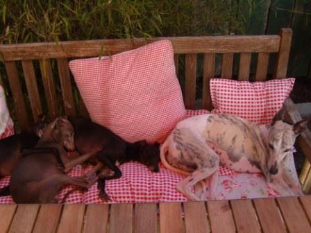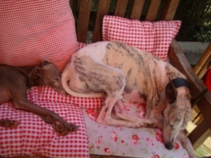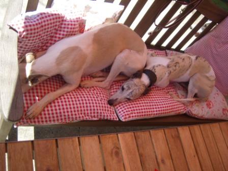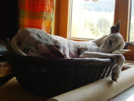 Sie war -bisher- der einzige Whippet, der aus dem Stand über unser Gartentor flog, um Schäferhunde etc., zu verbellen oder mal eben mitzufahren, zack, rein in den Bus, ob wir sie jetzt mitnehmen wollten oder nicht:-) Auch sprang sie ein Mal aus dem Fenster im ersten Stock in den Hof herunter. Zum Glück ohne Folgen, die OG-Fenster sind seither nur offen, wenn die Klappläden geschlossen sind.