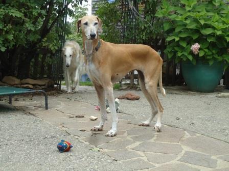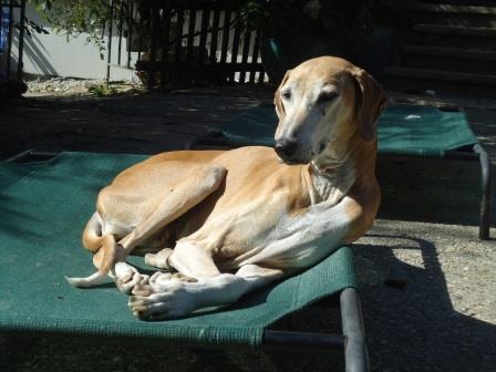 Vorsichtshalber sind wir zum Tierarzt, um ihr die Krallen schneiden zu lassen, was auch gut war, trotz Maulkorb war Telou ziemlich Azawakh;-) Leider ist das Leben mit rausgewachsen, so dass wir nur die Spitzen der Krallen kappen konnten. Telou hatte auch mal eine Begegnung mit einem Auto, war dann wohl einige Tage verschwunden, das rechte Sprunkgelenk weist eine große Verwachsung inkl. Arthrose auf. Sie dreht es beim Laufen nach außen, auch die Hüfte schlackert, aber sie kommt bisher gut damit zurecht. Sobald sie aber beim Aufstehen Probleme bekommt, wirds Zeit für Phen-Pred.